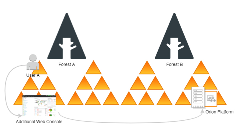 به عنوان مثال، اگر دفاتری در شهرهای مختلف در سراسر جهان دارید، ممکن است دامنههای جداگانهای برای هر دفتر با مدیر خود ایجاد کنید، تا منابع محلی مانند چاپگرها و سرورهای فایل مخصوص به نیازهای دفتر خود را مدیریت کنید. سپس همه آن دامنهها ممکن است در یک جنگل فراگیر گنجانده شوند تا کاربران یک دامنه بتوانند به طور بالقوه به دادههای ذخیره شده در سرور دامنه دیگر بدون نیاز به ورود دستی به آن هر بار که به چیزی از آنجا نیاز داشتند، دسترسی داشته باشند.
